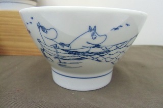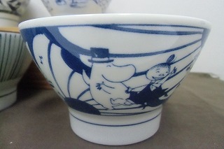 こちらは有田焼などに用いられる染付という手法でムーミンたちが描かれた食器、SOMETSUKEシリーズの、CHAWAN(茶碗)です。