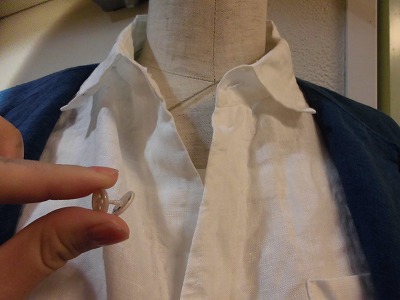 第一ボタンを開けると小顔に見えるラインにこだわっているシャツです。