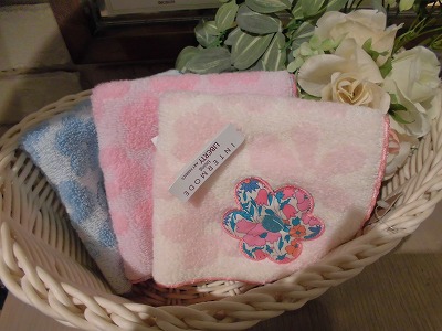 こちらは、お花の中の柄がそれぞれ違う、タオルハンカチ。
