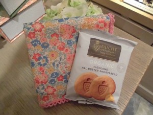 お友達に、バタークッキーとハンカチをセットで贈るのもおすすめ*クッキー¥189です。