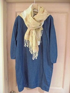 シンプルなワンピースに合わせて、ストールが主役になるコーディネイトがオススメです*
