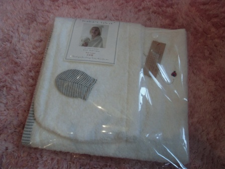 今回ご紹介させていただきますのは、ベビーキッズコーナーでたいへん人気のフード付きバスタオルです。