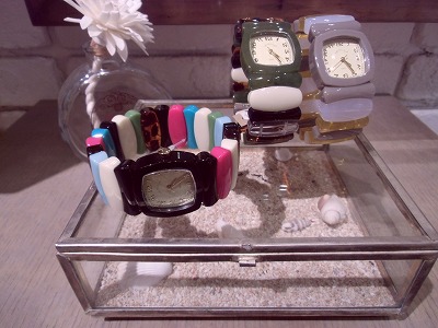 今までにない新感覚の腕時計です。他の時計にはない造形に、軽い着け心地でアクセサリーに近いかたちとして着けられるので、いつものオシャレにさりげなくプラスできるラフ感がステキです。