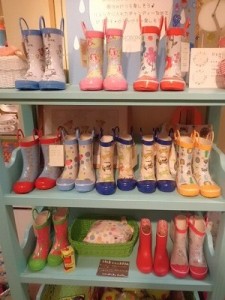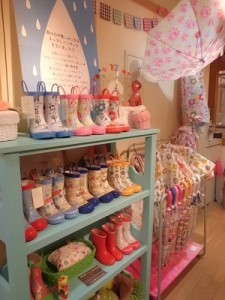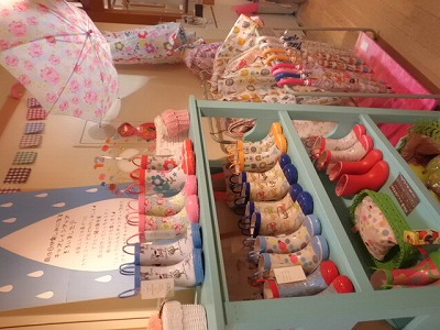 かわいい柄のレインブーツや、お揃い柄のカサ、