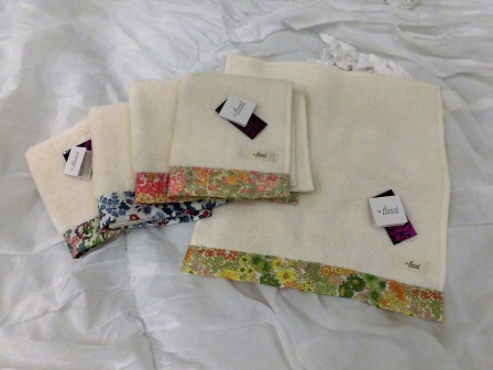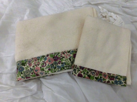 こちらのシリーズは、裾の部分にアクセントとしてリバティプリントを使用し、残りはタオル耳も含めてすべてパイル生地なので使い心地も良いです。