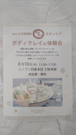 さて本日は、8月10日㈭に行われます、ボディクレイの体験会のご案内を致します。