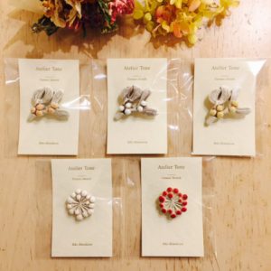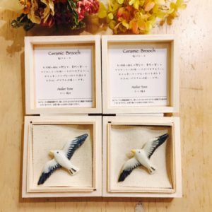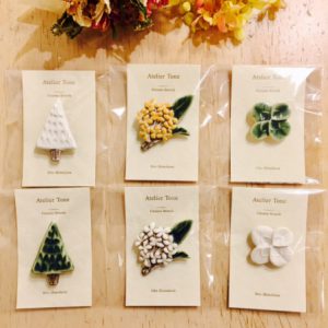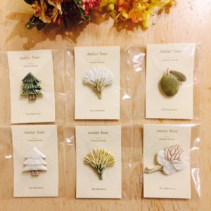 という想いで作品を作られています。素敵ですね…。矢のごとし!とか言ってないで、四季を感じ、楽しめる人間にタカムラもなりたい。当店では、陶磁器の素材のブローチを主にお取り扱いさせていただいております。一点一点手作りのため、いつ頃にどの作品がお店に並ぶかが未定の作品たち、手作りならではの温もりをぜひご覧くださいませ。