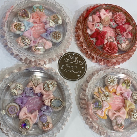 フリルが施された箱のなかには、可愛らしいリボンモチーフのヘアクリップが7つ入っており、1週間日替わりで楽しめるという、まさに夢のようなキラキラBOXです。