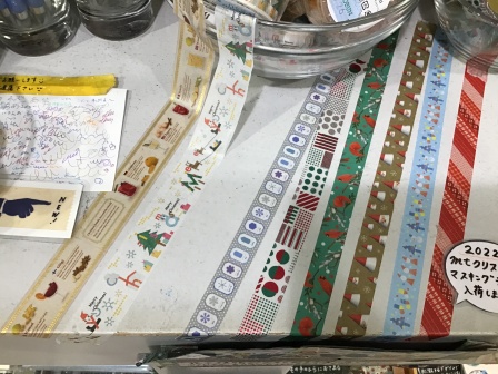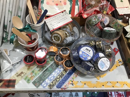 こちらは先日入荷したばかりのクリスマス柄のマスキングテープのコーナーです。どれも可愛く、思わず集めたくなってしまうものばかりですよ♪