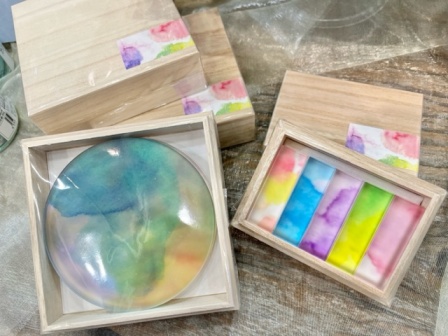 「あわいろはしおき」は5個セット、「あわいろコースター」、「あわいろコースター桜」はそれぞれ4枚セットで、上質な木箱に入っています。ご結婚祝いなどの贈り物にいかがでしょうか?