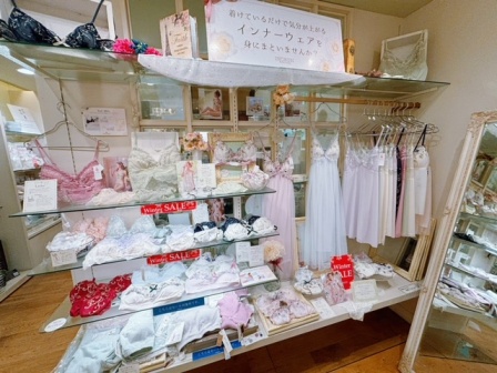インナーウェアコーナーでは、睡眠時に着用して頂けるアイテムから、デザイン性に優れ、とってもかわいいアイテムまで種類豊富にご用意いたしております。