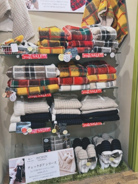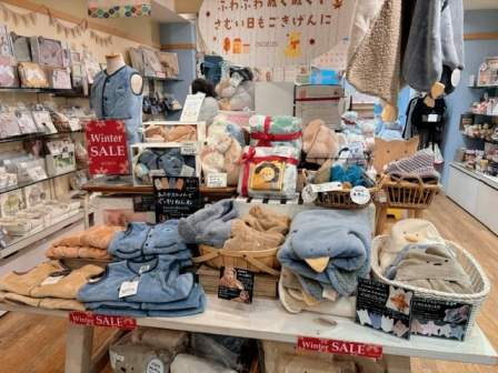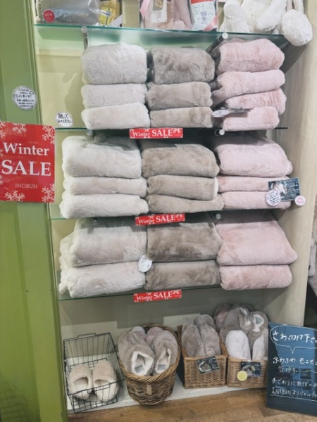 ブランケット以外にも、ルームブーツやハンドウォーマーもあり、そちらも大好評です!