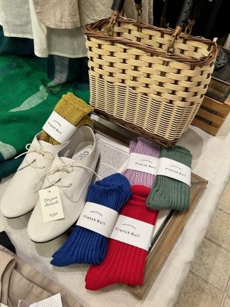 ・リネン靴下¥1,650(税込)靴¥12,100(税込)柳バック¥6,380(税込)