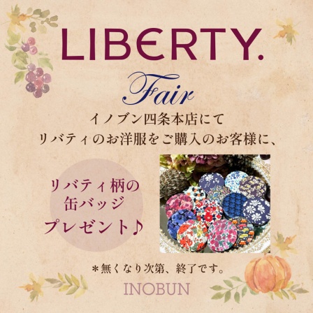 そして、期間限定でリバティウエアをご購入のお客様へ、リバティ柄の缶バッジをプレゼントしております!! (*無くなり次第終了となります。)