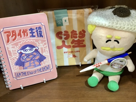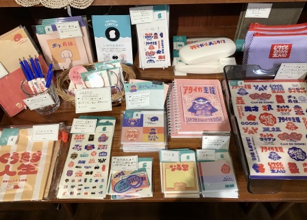 「ぐうたら人生」の巾着 ¥990税込など楽しいステーショナリーたち