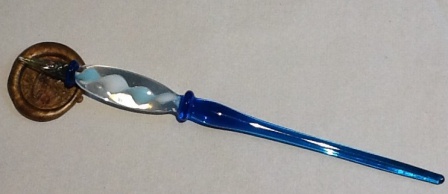 ガラスペンは普通のペンとは違った仕組みのペンです。インクにペン先を浸すと、ペン先の細かな溝がインクを吸い上げます。インクからペン先を離してもインクが垂れ落ちることがありません。そしてペン先を紙に触れさせると毛細管現象により紙がインクを吸って文字を書くことができます。