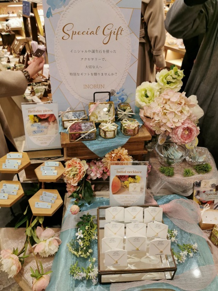 大野:テーマは特別なプレゼントということで、これからギフト需要が高まるシーズンに、その人その人のイニシャルですとか誕生石ですとか、そういったものをご用意しております。なおかつ、今回の特集のほとんどの商品がイノブンオリジナルで、他では手に入らないようなものですし、ラッピングの方法もいろいろあるので、その人を思いつつ選んで頂くと特別感が出るかな、と思います。