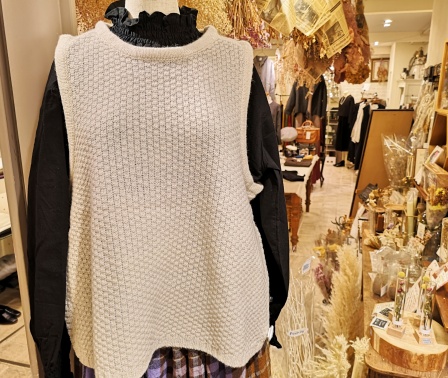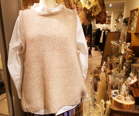 ウール素材の色鮮やかなニットベストやオーガニックコットンのプルオーバー、