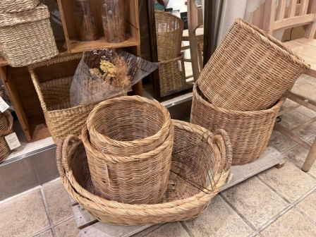 他にも、種類豊富にかごやバスケットを取り揃えております。イノブン四条本店、地下フロアにてご覧ください。皆様のご来店、心よりお待ちしております!