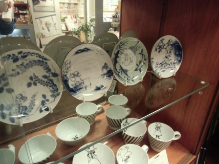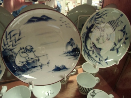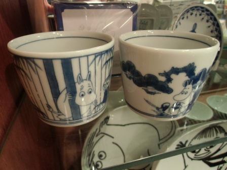 染付の伝統的な柄や絵の中に、ムーミンが溶け込んでいて、とても楽しい商品です。