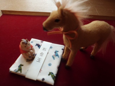 本日のブログトップの写真、そう、来年の干支「うま」アイテムをぱちり。