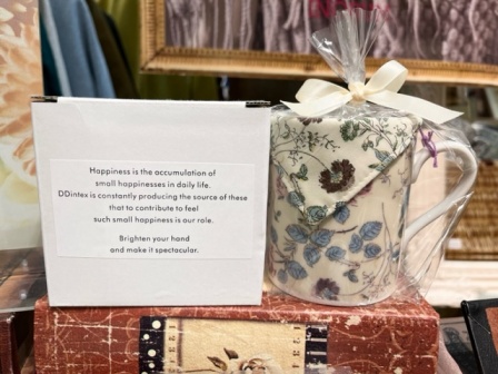 こちらは新登場のマグカップ。同じ柄のコースターがセットになっており、優雅なティータイムを演出します。