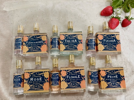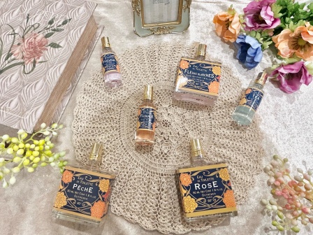 香りは全部でフルールブランシェ、ティー、フューシア、ローズ、フローラル、ペシェの6種類の展開となっております。いずれも上品で華やかでありつつ、とても癒される香りです!