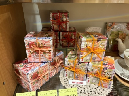 ディンブラ茶をベースにバニラとストロベリーの甘酸っぱい風味をブレンドした、赤いパッケージのメリークリスマスティーと、ヌワラエリア茶と洋梨の香りが合わさった爽やかで渋みのある、青いパッケージのホリーグリーンティーは早くも大人気です*・゜゚・*:.