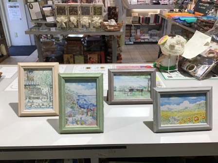 期間中は定番で置いているポストカードにくわえ、原画や版画がたくさん並びます。