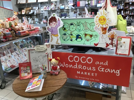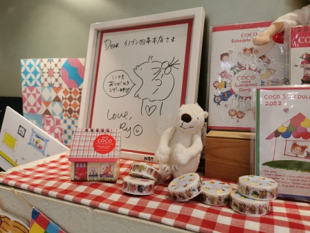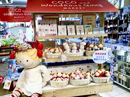 ↑4Fで特集中のCOCOちゃんグッズ。イラストレーター・サカモトリョウさんの描く人気絵本のキャラクターです。