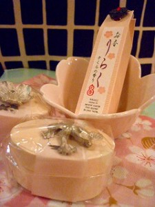 前に写ってる小さな和菓子は本物そっくりのはしおき(各525yen)。