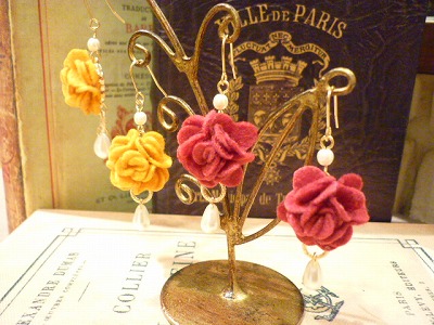 お花とパールのピアスです