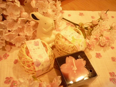 花づくしは桜のキャンドル。小さいながらにふんわりとした香りがリラックス効果抜群。