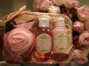 このピンク色のボトルは【ダマスクローズ】の香りで、エジプト女王クレオパトラが愛した、