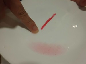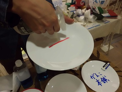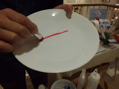 口紅でお皿に落書きしちゃうスタッフさん。大丈夫ですか!?