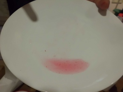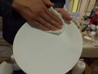 キッチンタオルでさっと拭くともう真っ白なお皿に戻っていました。