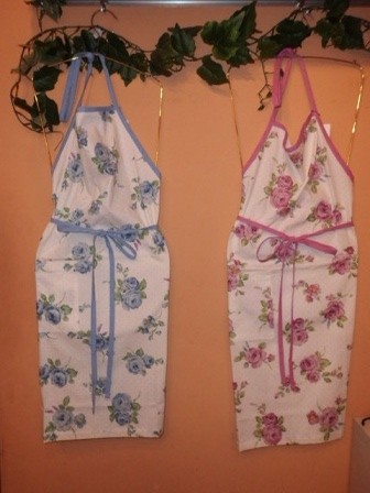 大きな薔薇の柄に小さいドット柄の入ったエプロン