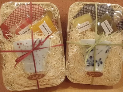 こんな和風のものと、洋風のものを各2個ずつセットにしたギフトセットもあります。
