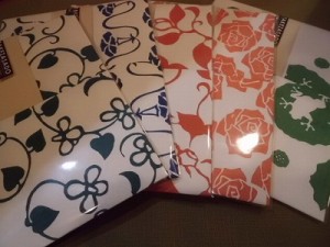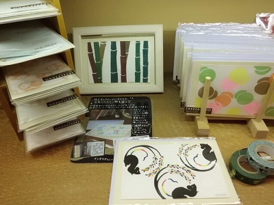 複数の版木から、色・柄を選び、はがきを5枚摺って頂けます♪