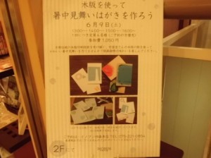 さてさて、じめじめ雨の土曜日ですが、今日は2Fフロアにて「木版を使って暑中見舞いはがきを作ろう」のイベントを開催しました!