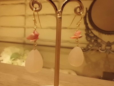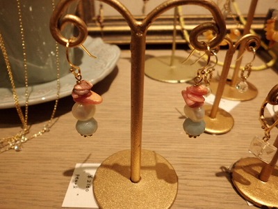1つ目…アベンチュリンという天然石を使った、全体的に淡いピンクのピアス。