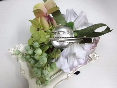 クリップとブローチピンがついているので、オケージョンドレスのアクセントやストールにつけても素敵ですし…今の季節ならカゴバッグにつけるのもおしゃれ。使わないときはそっと飾っておくだけでもとっても綺麗です。もちろんお友達へのプレゼントにもおすすめです。