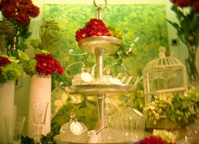 和モダンに合わせ、1Fのお花のカラーも赤とライムに。