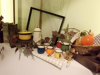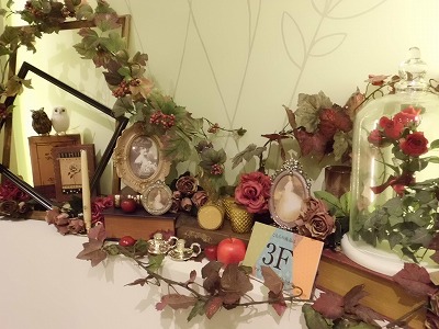 階段周りも各階の秋のオススメに模様替えしているんです♪