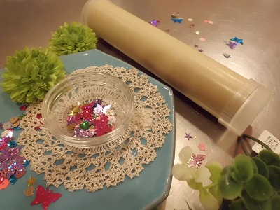 この様なスパンコール等を筒に入れて頂くだけで、あら素敵!