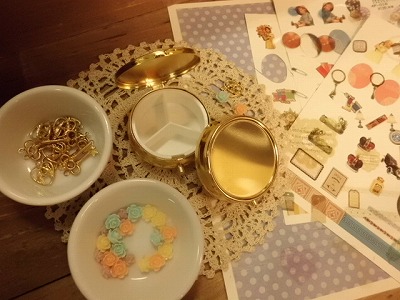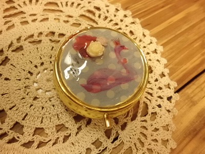 フタの部分をコラージュ、クリスタルレジンでぷっくり固めます。