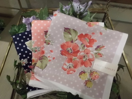 まずは、ローラアシュレイの上品な花柄ハンカチです。