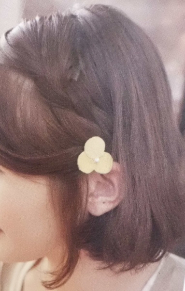 こんな風に耳上にちょこんと留めてみても可愛いですし、
