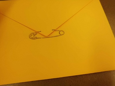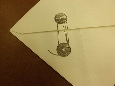 こんな風に、スタンプなのですが封筒を安全ピンでとめているようにみえるものだったり紐でとめているようにみえるものだったり。