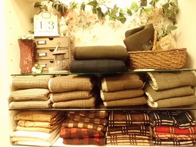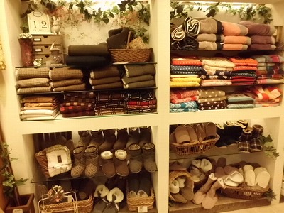 ブランケットやルームシューズコーナーはこのように、今回紹介させて頂いた商品だけでなく